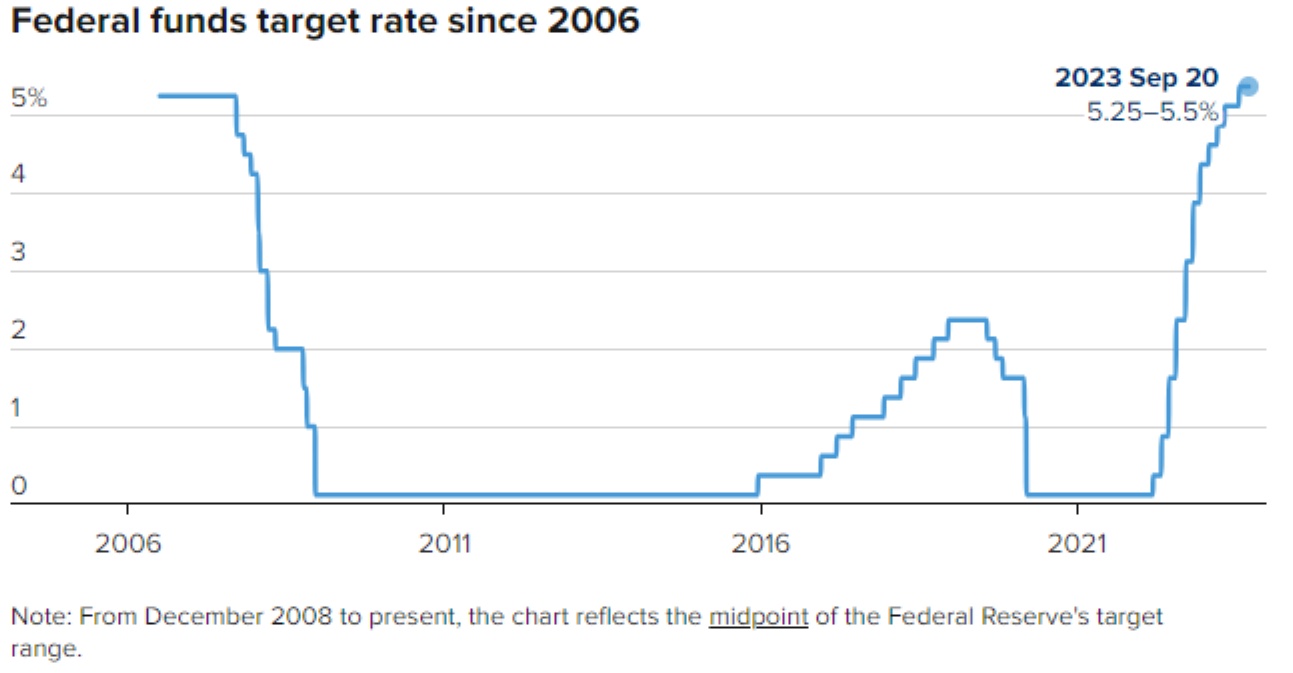 智通财经APP获悉,北京时间9月21日凌晨2点,美联储如期宣布将利率维持在5.25%-5.5%的目标区间,该行同时还表示,仍预计在年底前再加息一次,明年的降息次数将少于之前的预期。