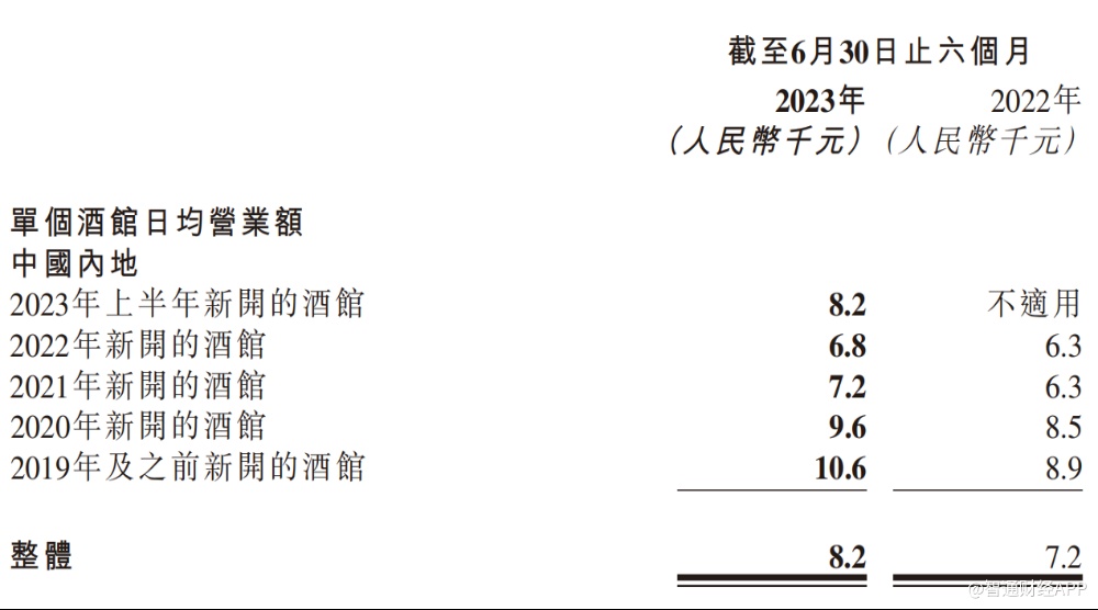 好的一面是,消费复苏为海伦司的存量门店经营带来积极变化。2023年上半年,公司酒馆单店日均营业额达到8200元,同比提升1000元。此外,公司在2023年上半年新家的酒馆单店日均营业额达到8200元,优于2021年和2022年新开的酒馆平均表现。