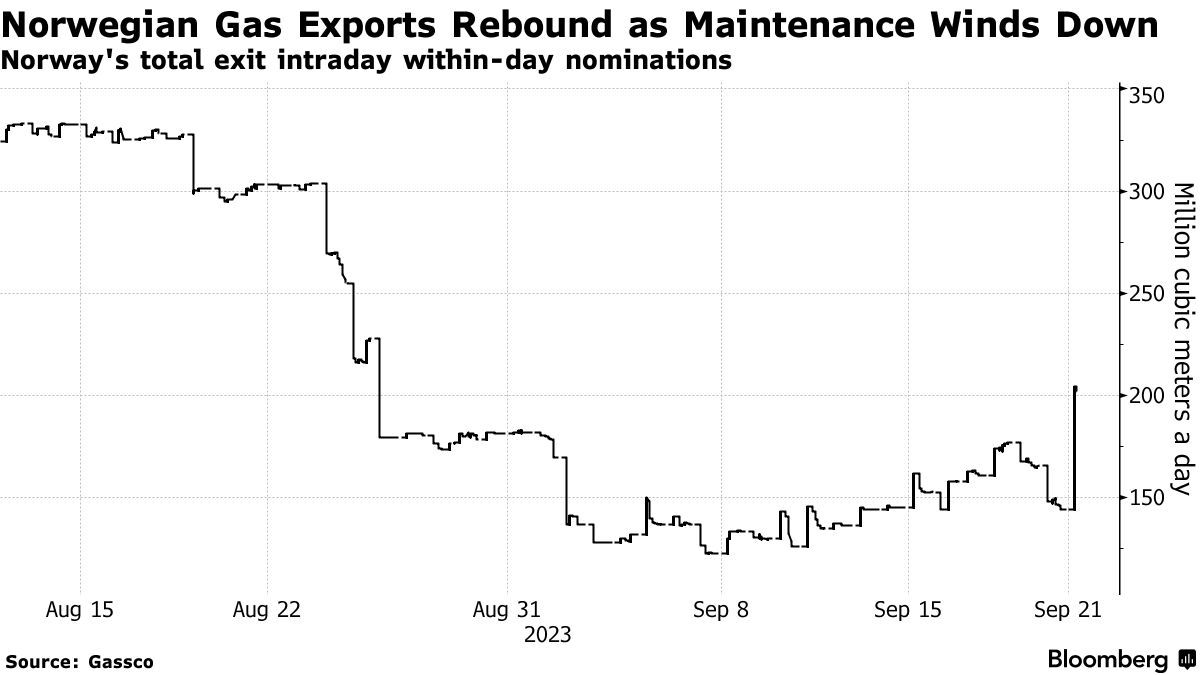 不过,在供应风险困扰欧洲天然气市场之际,欧洲的天然气储存率(94%)仍远高于往年平均水平,且欧洲大部分地区在9月的天气相对温和,天然气需求也保持低迷。