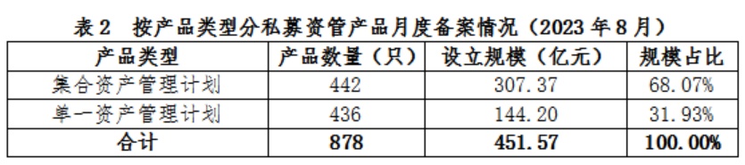从产品类型看,8月备案的集合资产管理计划设立规模占比高于单一资管计划。