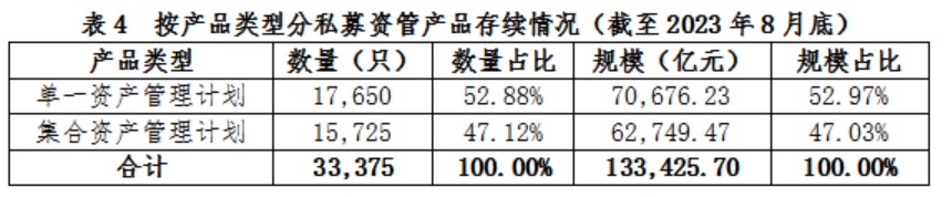 从产品类型看,8月存续单一资产管理计划规模占比为52.97%。