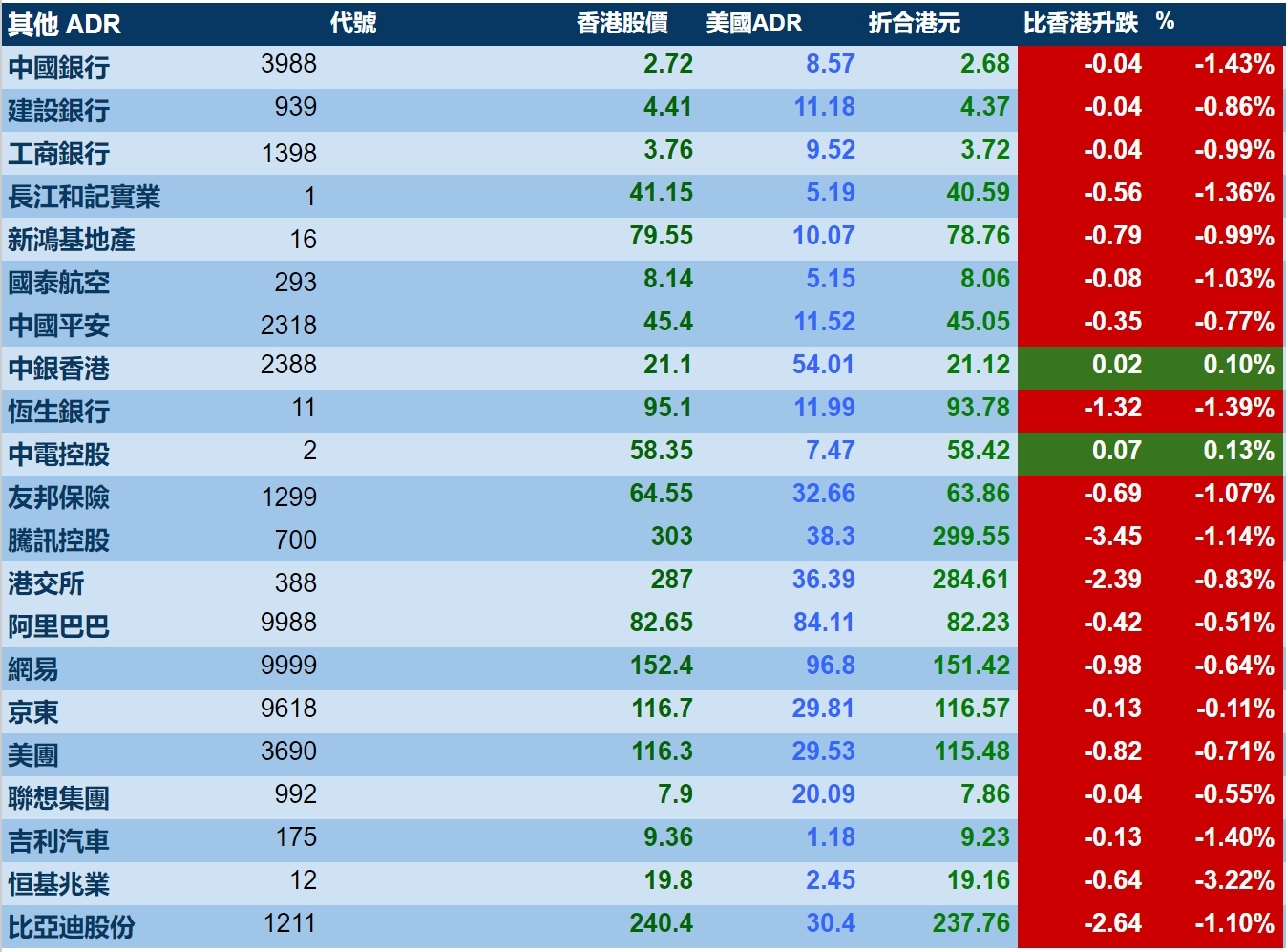 大型蓝筹股多数下跌,汇丰控股收报61.41港元,较港收市涨1.01%;腾讯控股收报299.55港元,较港收市跌1.14%。