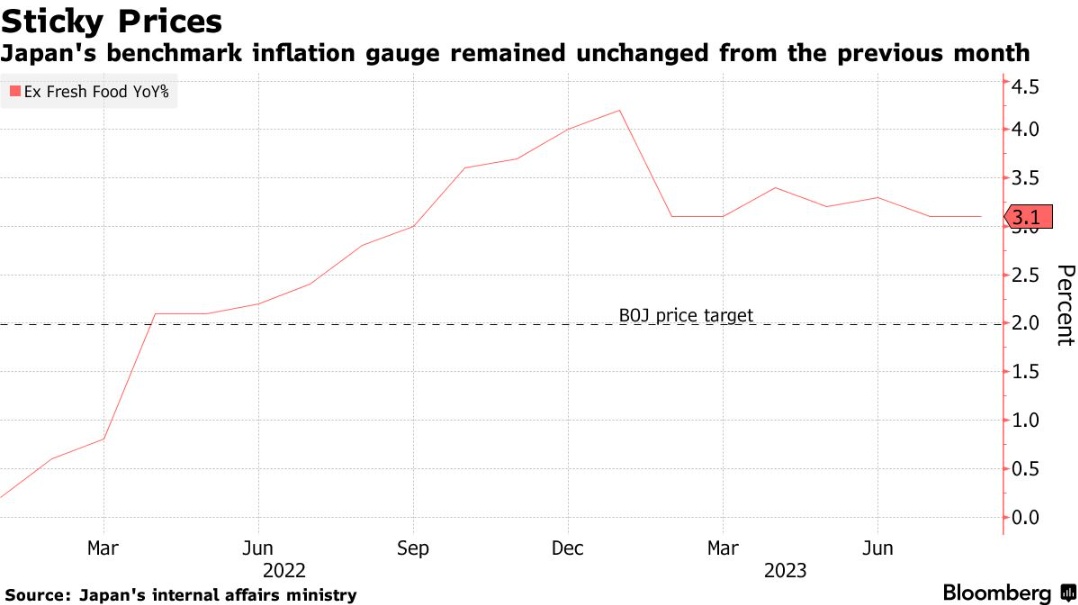 此外,日本央行关注的另一个关键指标——扣除能源和新鲜食品的价格,也与7月份的涨幅相同,较上年同期上涨4.3%。
