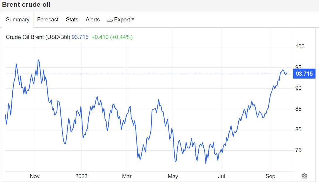 国际原油基准——布伦特原油价格周二升至10个月以来的最高位,但随后明显回落,主要因美联储释放强烈鹰派预期——即年内可能还有一次加息以及长时间维持高利率的预期,这些鹰派预期极大程度打压需求;以及一些交易员在油价连续多个交易日上涨后选择获利了结——凸显出技术面“超买”指标开始发挥作用。但是在沙特阿拉伯和俄罗斯减产的推动下,布伦特原油价格自6月份以来已飙升约30%。