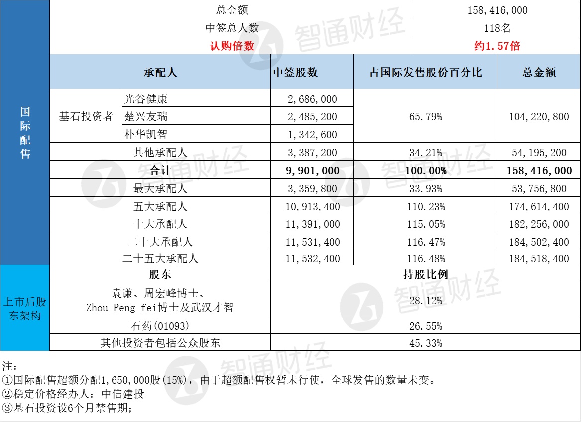 国际配售申购人数未披露,认购倍数约1.57倍。