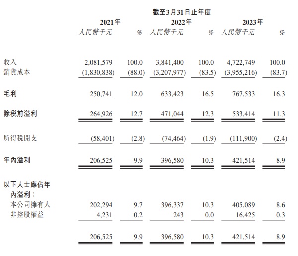财务方面,于2021年度、2022年度、2023年度,米高集团的收入分别为约20.82亿元、38.41亿元、47.23亿元人民币;同期,集团实现年内溢利分别为约2.07亿元、3.97亿元、4.22亿元人民币。