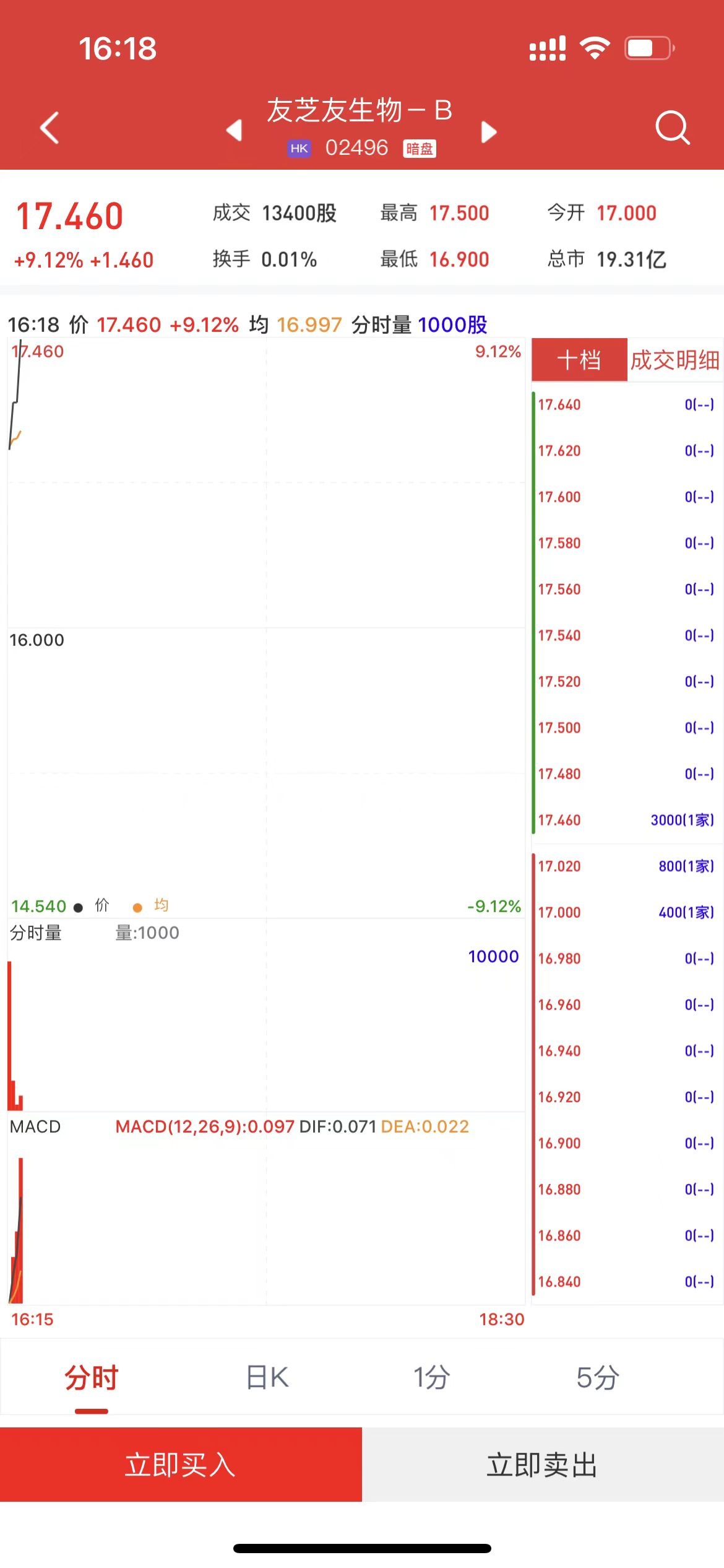 智通财经APP获悉,友芝友生物-B(02496)将于9月25日(周一)在香港挂牌。截至发稿,利弗莫尔证券暗盘交易显示报价17.46港元,较招股价16.00港元涨9.12%。每手200股,不计手续费,每手赚292港元。