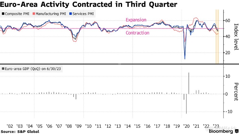 数据显示,欧元区9月制造业和服务业的PMI均低于荣枯分水线,其中,制造业PMI已连续15个月低于50。