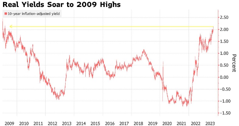 就在美联储主席鲍威尔再次表示决心保持紧缩政策立场后,华尔街重新开始担心货币紧缩风险,这引发了大型科技股及其他股的暴跌。美联储选择的冷却依然火热的美国经济的工具是:确保经通胀调整后的实际利率——被视为借款人的真实资金成本——保持在高位。鲍威尔在政策会议上表示,实际收益率需要在"一段时间内"保持有意义的正值,美国基准实际利率本周触及十年高位。