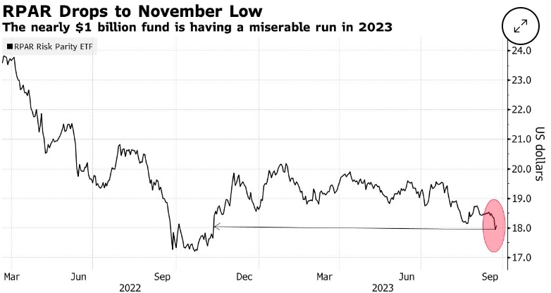 跨资产抛售令规模9.26亿美元的RPAR风险平衡ETF(RPAR)录得去年12月以来最糟糕的一天,并跌至10个月低点。衡量该策略的一项关键指标出现了今年最大跌幅之一。