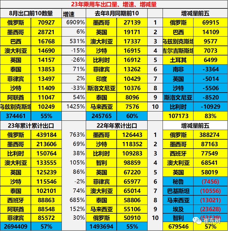 2023年1-8月份增量相对较多的是俄罗斯、中亚和北美、亚洲的市场,俄罗斯、墨西哥、澳大利亚等都很强。