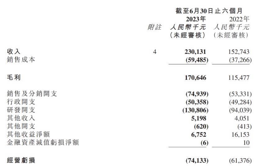 不过,从费用端支出金额的绝对值来看,2023年上半年公司销售费用、管理费用和研发费用分别达到7493.9万元、5035.8万元和1.31亿元。也由于费用端支出的进一步提升,导致公司未能顺利实现扭亏。