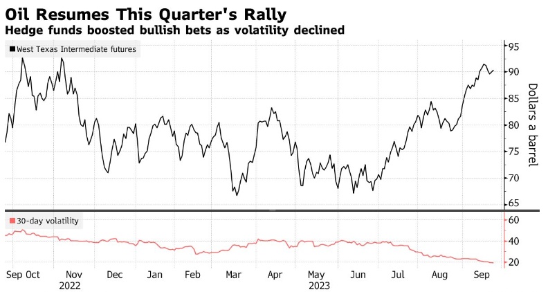 自6月底以来,油价飙升了近30%,并将创下自2022年3月以来的最大季度涨幅,这要归功于欧佩克+关键国家沙特阿拉伯和俄罗斯的重大供应限制,以及美国和中国这两个最大经济体的前景更加光明。油价飙升重新引发了有关原油价格可能达到每桶100美元的讨论,同时加大了石油进口国的通胀压力。