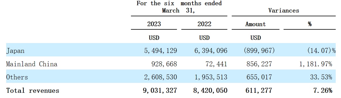 从区域来看,传丞数字的跨境销售业务历史上大部分都在日本展开,但自2021年开始公司已开始进军中国市场,并取得了一定成效。据招股书显示,2021财年时,跨境销售业务的来自日本的收入占比高达99.48%,但至2023财年上半年中,来自日本的收入占比已下降至85.65%,而来自中国大陆和香港的收入占比分别为8.95%、5.40%。