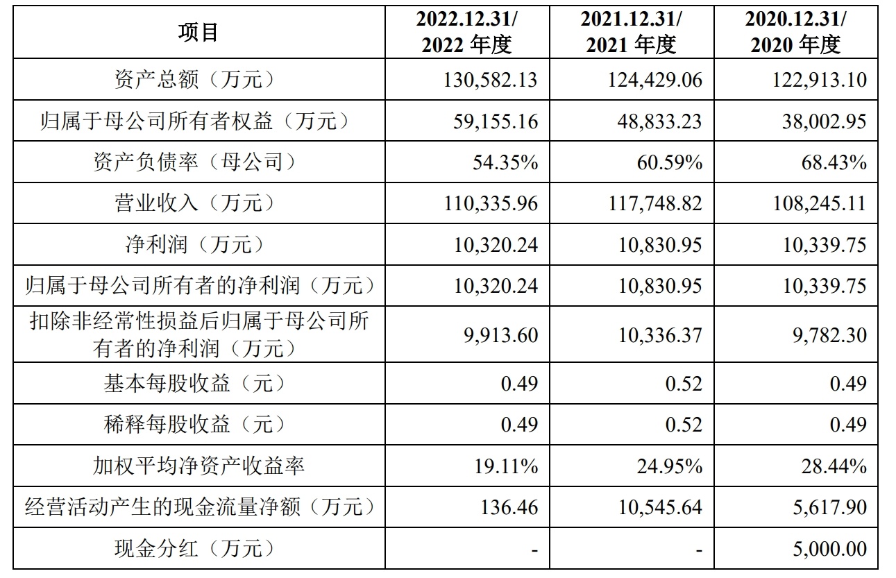 财务方面,于2020年度、2021年度、2022年度,公司实现营业收入分别约为10.82亿元、11.77亿元、11.03亿元;实现净利润分别为1.03亿元、1.08亿元、1.03亿元。报告期内,公司业务规模相对较大,整体经营情况较为良好。