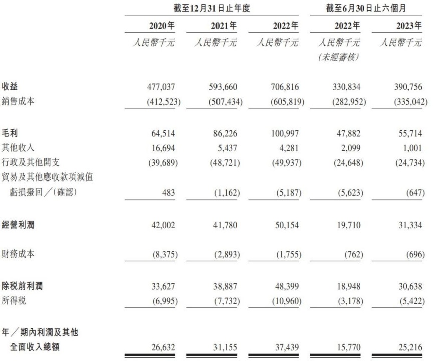 经发物业的净利润由2020年的2663.2万元增加17.0%至2021年的3115.5万元,并进一步增加20.2%至2022年的3743.9万元。公司的净利润由截至2022年上半年的1577.0万元增加59.9%至截至2023年上半年的2521.6万元。